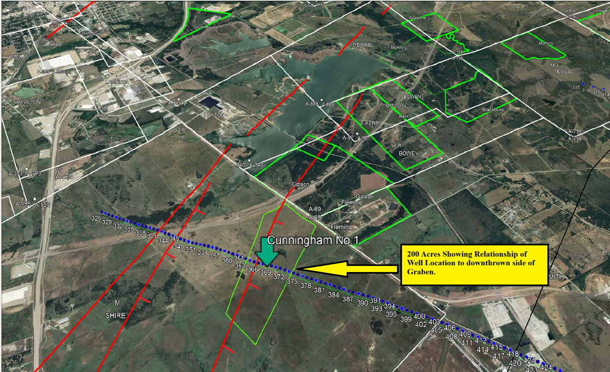 Green boxes indicate leases acquired for drilling six high-production shallow wells.